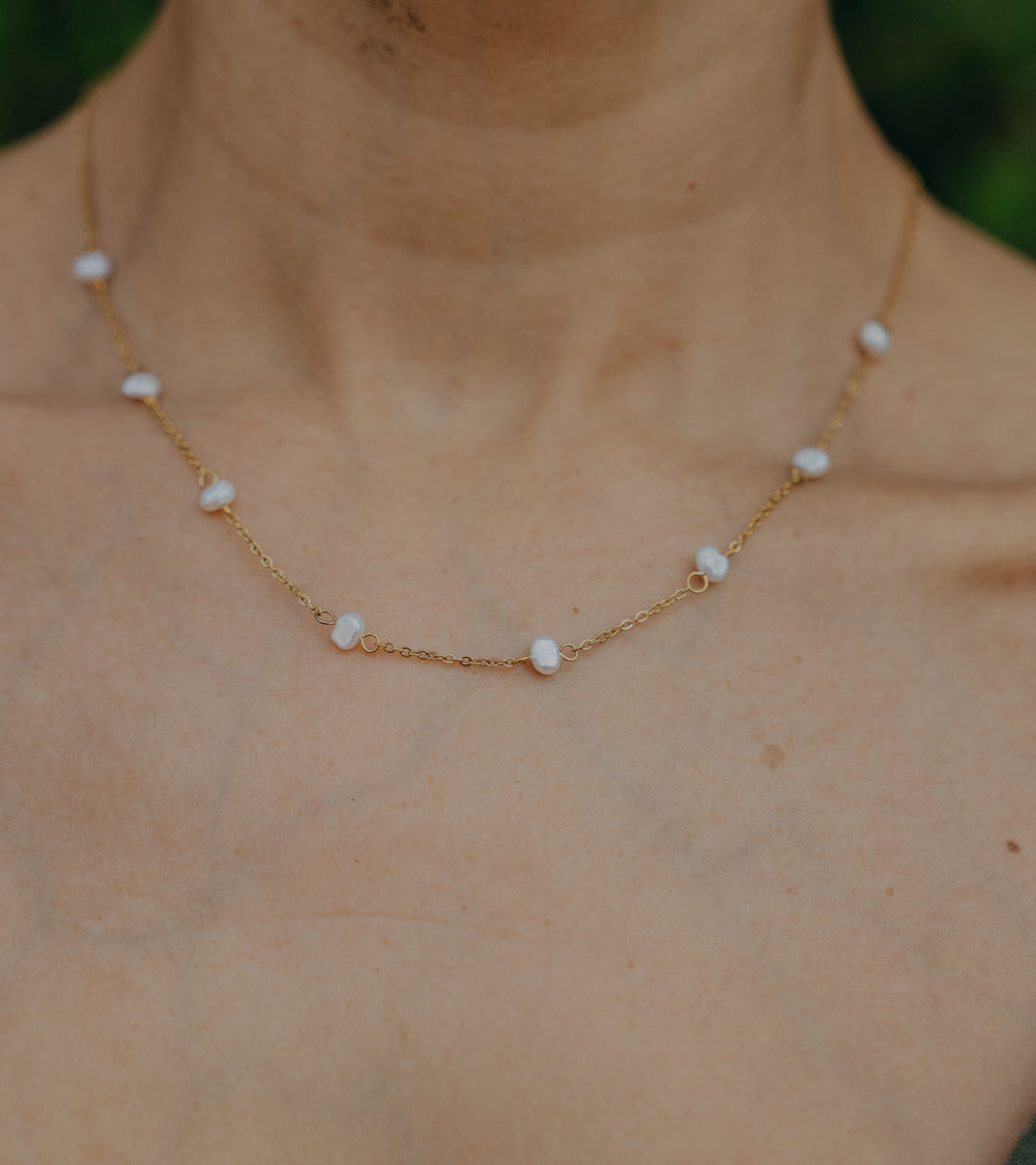 Halskette ~ MORNING DEW mit Süßwasserperlen